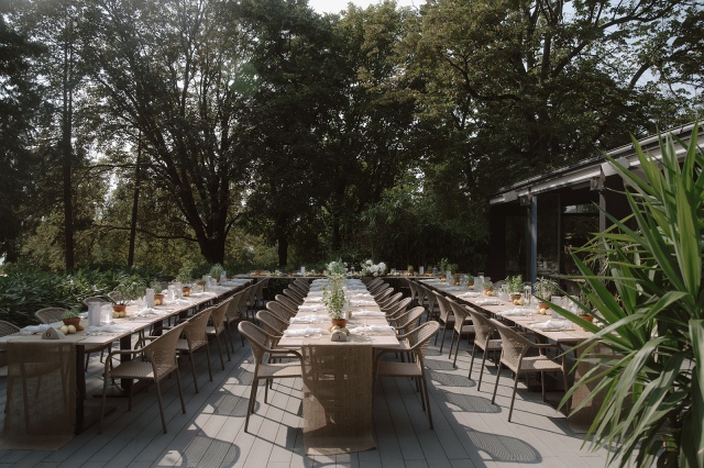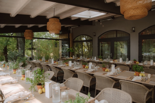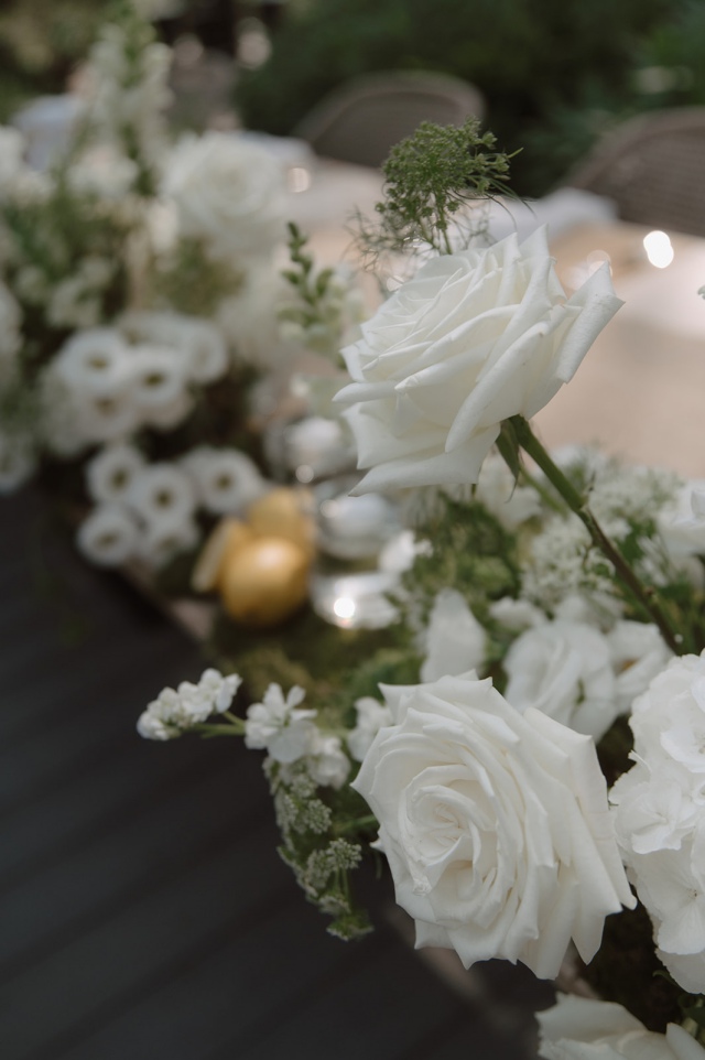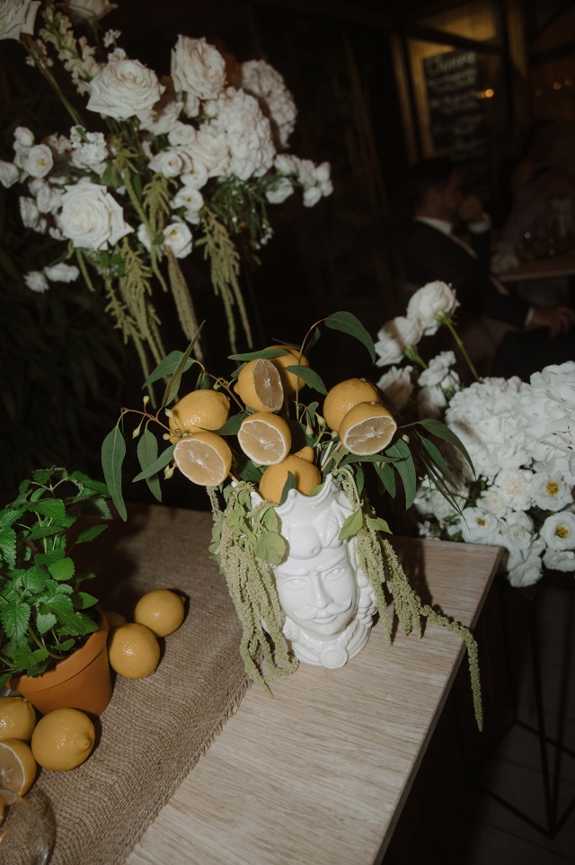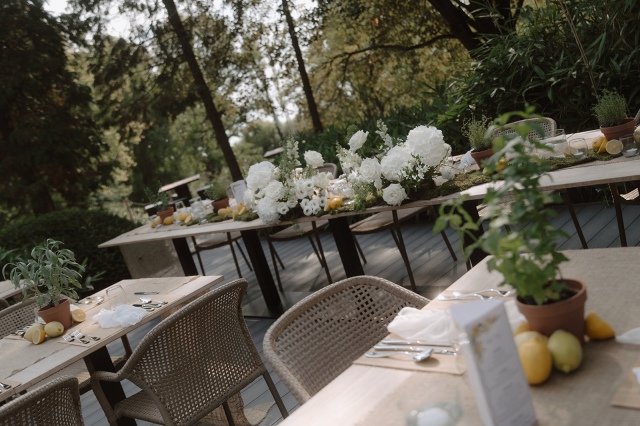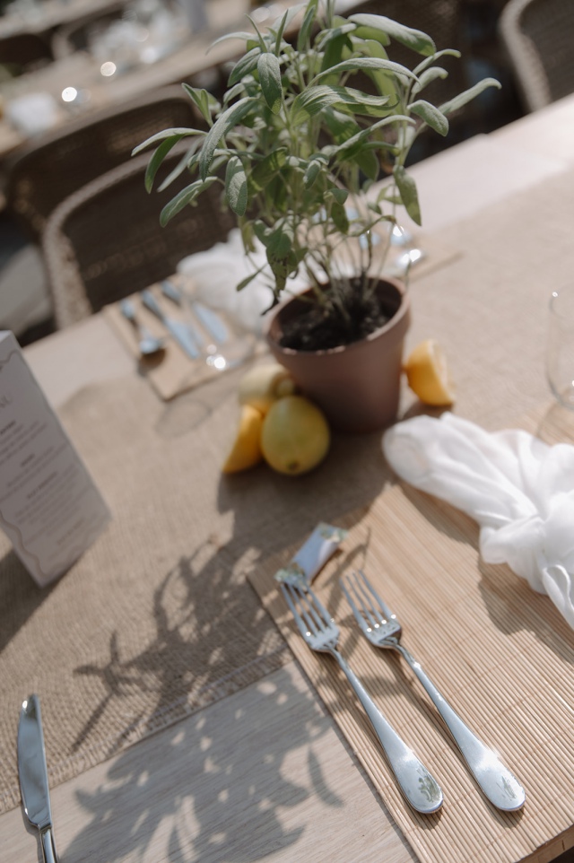 Liliék egy mediterrán hangulatú esküvőt álmodott meg, amelyben a természetesség és az időtlen elegancia harmonikusan fonódott össze. Az esküvői asztaldekorációkban hangsúlyos szerepet kaptak a citrusfélék, friss fűszernövények, valamint a letisztult, fehér virágkompozíciók. Az esküvő fő virága a lenyűgöző, hófehér Playa Blanca rózsa volt, amely eleganciájával végigkísérte az egész dekorációs látványvilágot.